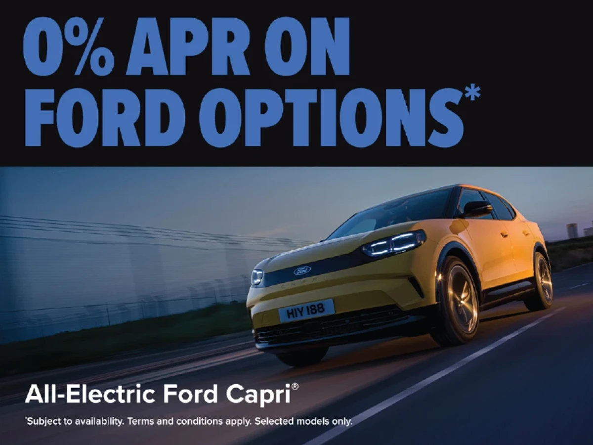 † Excludes delivery & dealer related charges, includes Government Subsidies which are SEAI Grant and VRT Relief. Model is shown for illustrative purposes only. ††The Guaranteed Minimum Future Value (GMFV) is payable if you renew or retain the vehicle at the end of the agreement. Further charges may be applied by your Ford Dealer subject to kilometre limits/ condition of the vehicle. *Lending criteria and conditions apply (Over 18s only). To qualify for this Finance Offer, a minimum deposit of 10% is required. Rate quoted is correct as at 01/10/2025 and is subject to change. Offer available on selected Ford Capri models ordered between 20th Oct and 30th Nov 2025 and registered by 31st March 2026 at participating Dealers. Your motor dealer may be paid a commission fee by Ford Credit for arranging your finance agreement. You can ask the dealer for details of their commission arrangements and how much they may get. This is a Consumer Hire Purchase agreement provided by Ford Credit. Ownership remains with Ford Credit until the optional final payment is made. Bank of Ireland trading as Ford Credit is regulated by the Central Bank of Ireland.