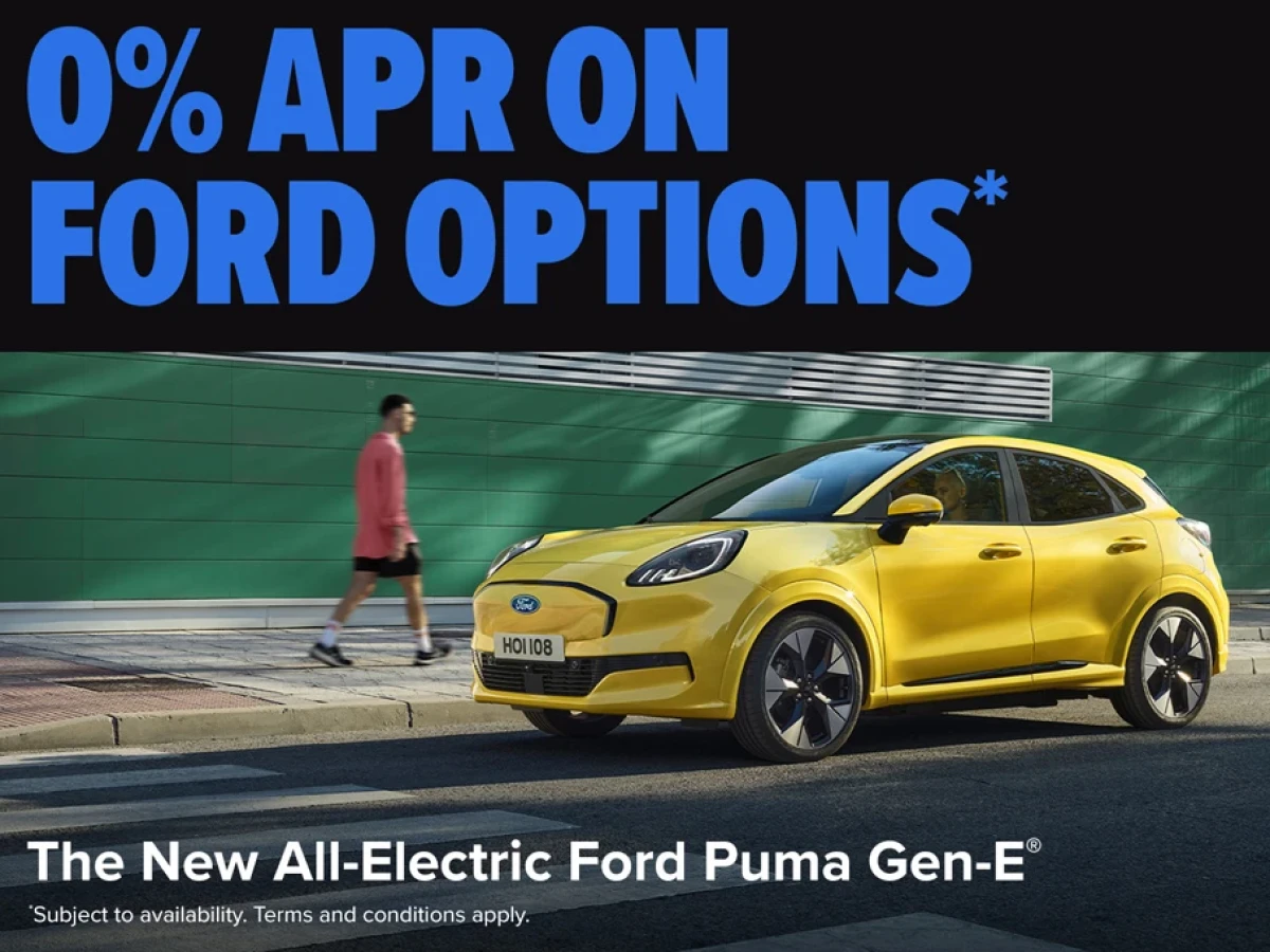 † Excludes delivery & dealer related charges, includes Government Subsidies which are SEAI Grant and VRT Relief. Model is shown for illustrative purposes only. ††The Guaranteed Minimum Future Value (GMFV) is payable if you renew or retain the vehicle at the end of the agreement. Further charges may be applied by your Ford Dealer subject to kilometre limits / condition of the vehicle. *Lending criteria and conditions apply (Over18s only). To qualify for this Finance Offer, a minimum deposit of 25% is required. Rate quoted is correct as at 01/10/2025 and is subject to change. Offer available on selected Ford Puma Gen-E models ordered between 20th Oct and 30th Nov 2025 and registered by 31st March 2026 at participating Dealers. Your motor dealer may be paid a commission fee by Ford Credit for arranging your finance agreement. You can ask the dealer for details of their commission arrangements and how much they may get. This is a Consumer Hire Purchase agreement provided by Ford Credit. Ownership remains with Ford Credit until the optional final payment is made. Bank of Ireland trading as Ford Credit is regulated by the Central Bank of Ireland.