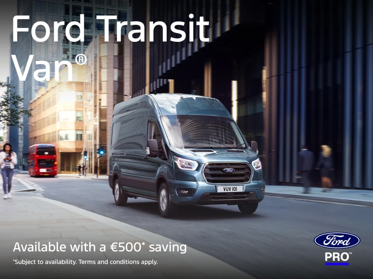 ©2025 Ford Motor Company. Ford Transit Van is a trademark of Ford and its affiliates. *There is a saving of €500 on Transit models when ordered between 20th October and 31st December 2025 and registered by 31st March 2026.